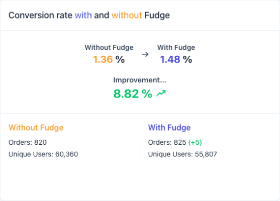 For most of our customers, we run an A/B test where we roll out Fudge to 50% of their users and measure the difference in performance for the 2 groups.