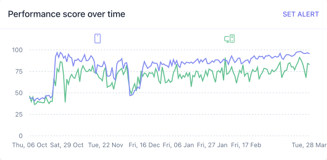 During the test, anyone from the Stix team could log into the Fudge dashboard and see how their site how improving with Fudge over time.